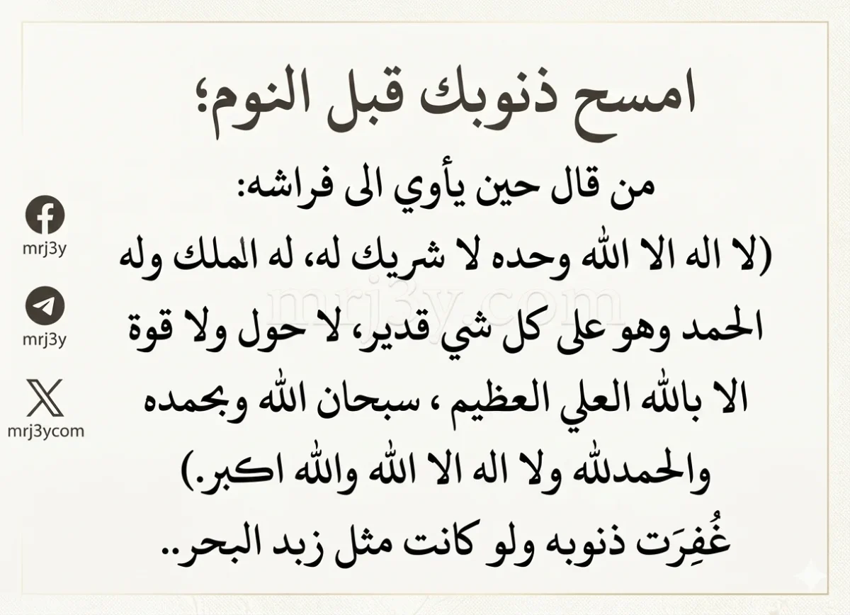 وتؤكد هذه الأذكار أهمية ختم اليوم بذكر الله وطلب الحفظ والرحمة قبل النوم.