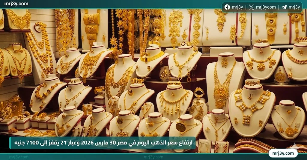 قفز سعر الذهب اليوم في مصر خلال تعاملات الإثنين 30 مارس 2026 ليسجل عيار 21 نحو 7100 جنيه للبيع بزيادة تصل إلى 125 جنيهًا مقارنة ببداية اليوم ، ويأتي هذا الصعود مدفوعًا بارتفاع سعر الدولار أمام الجنيه مع تحركات محدودة عالميًا ، كما يتابع المواطنون هذه التغيرات بشكل لحظي خاصة مع تزايد الإقبال على الشراء داخل سوق الصاغة ، وتستمر حالة الترقب في ظل تقلبات الأسواق العالمية والمحلية .