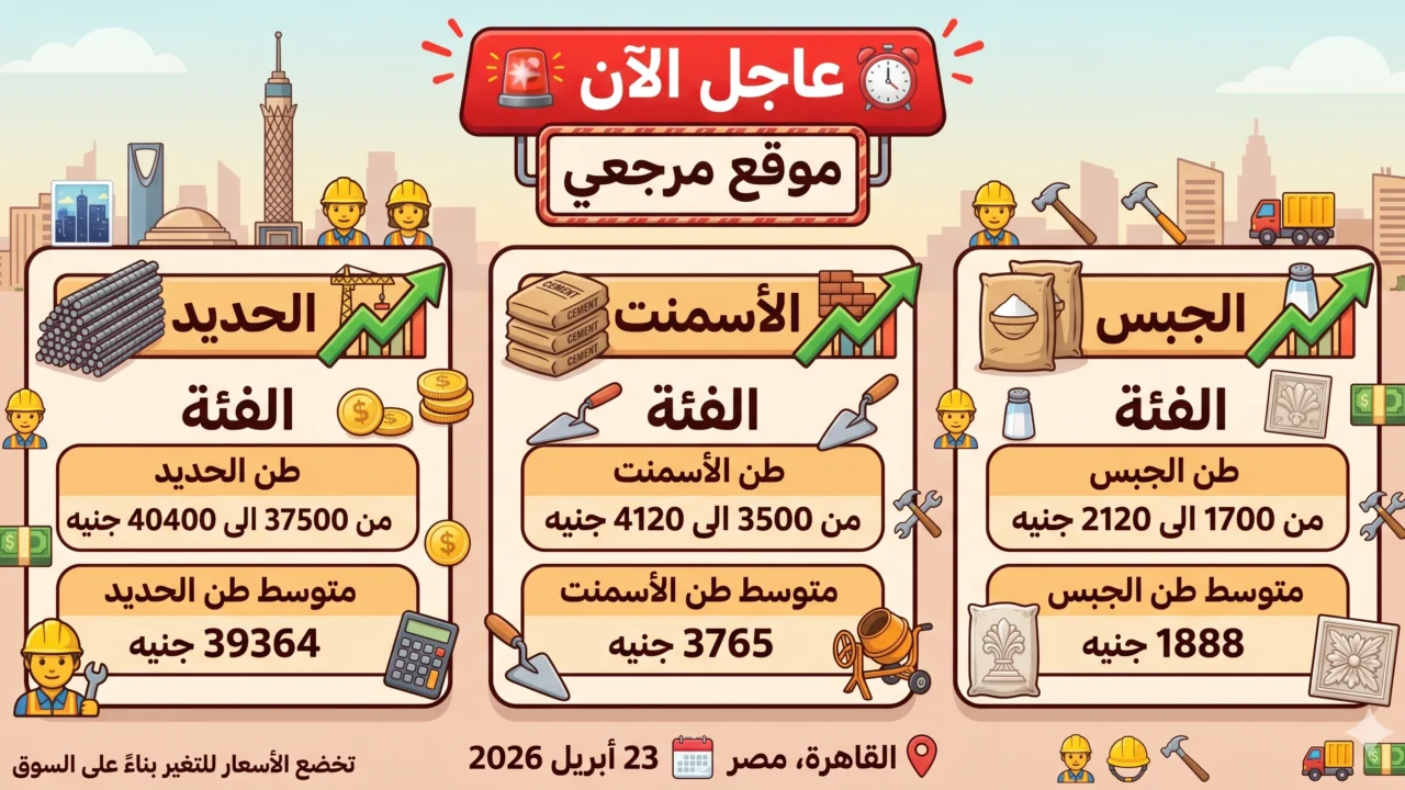 أسعار الحديد والأسمنت اليوم 23 أبريل 2026 في مصر وتحركات الجبس بالسوق المحلي