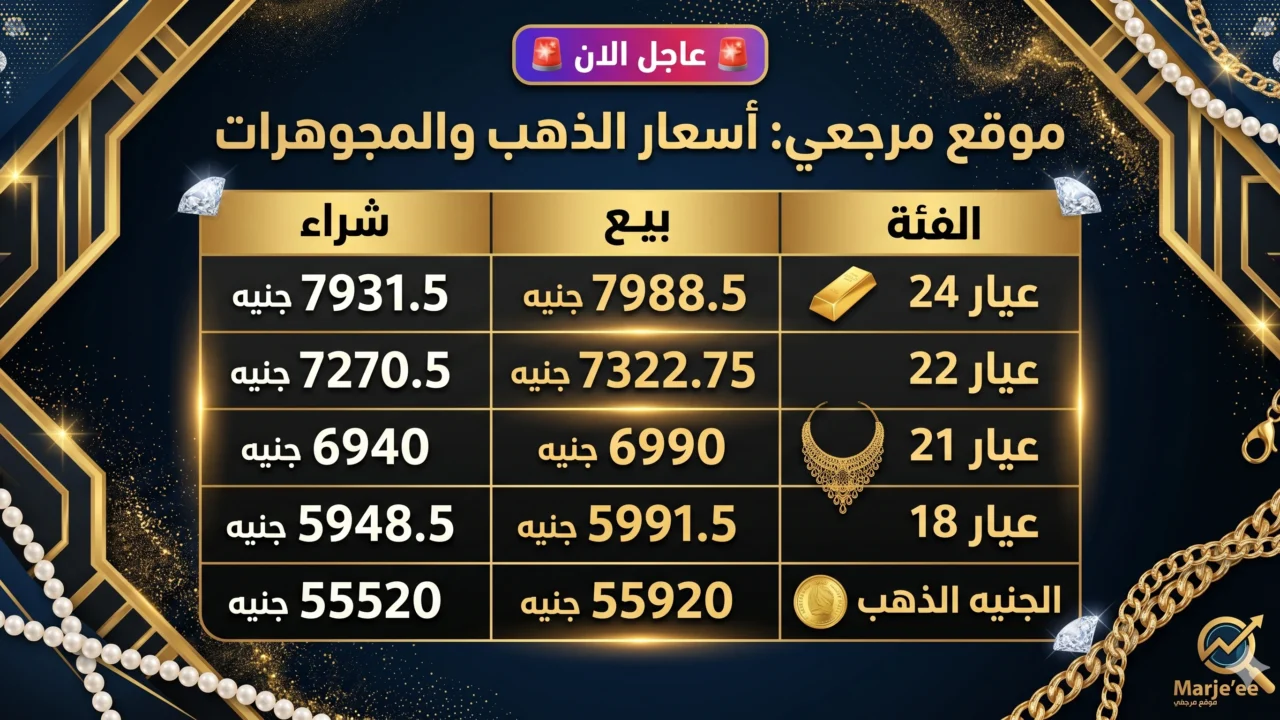 | عيار 24 | 7988.5 جنيه | 7931.5 جنيه |