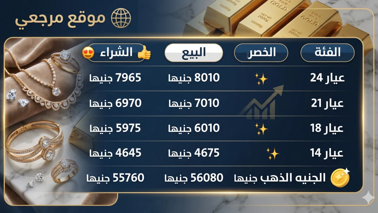 | عيار 24 | 8010 جنيهات | 7965 جنيها |