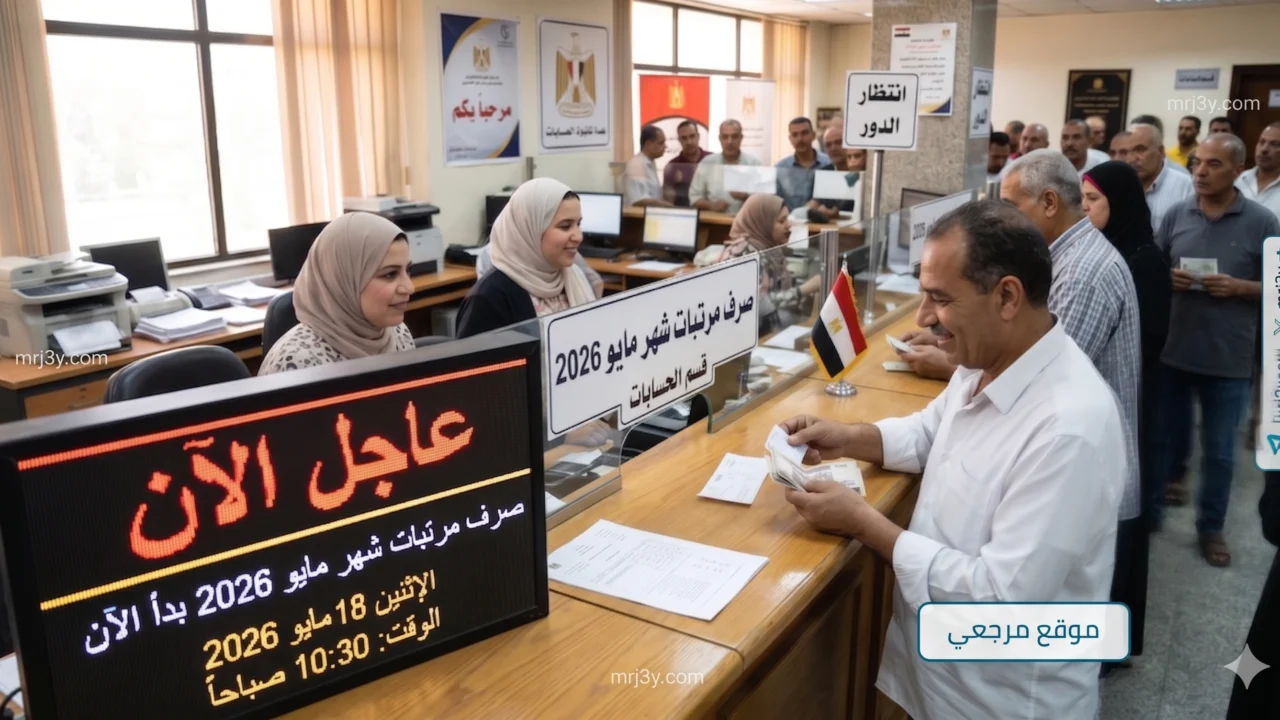 مرتبات مايو 2026 ستصرف وفق جدول زمني موزع على عدة أيام، بما يسمح بتقليل التكدس أمام ماكينات الصراف ومنافذ التحصيل، مع استمرار إتاحة المستحقات عبر أكثر من وسيلة تشمل البنوك والبريد والمحافظ الإلكترونية.