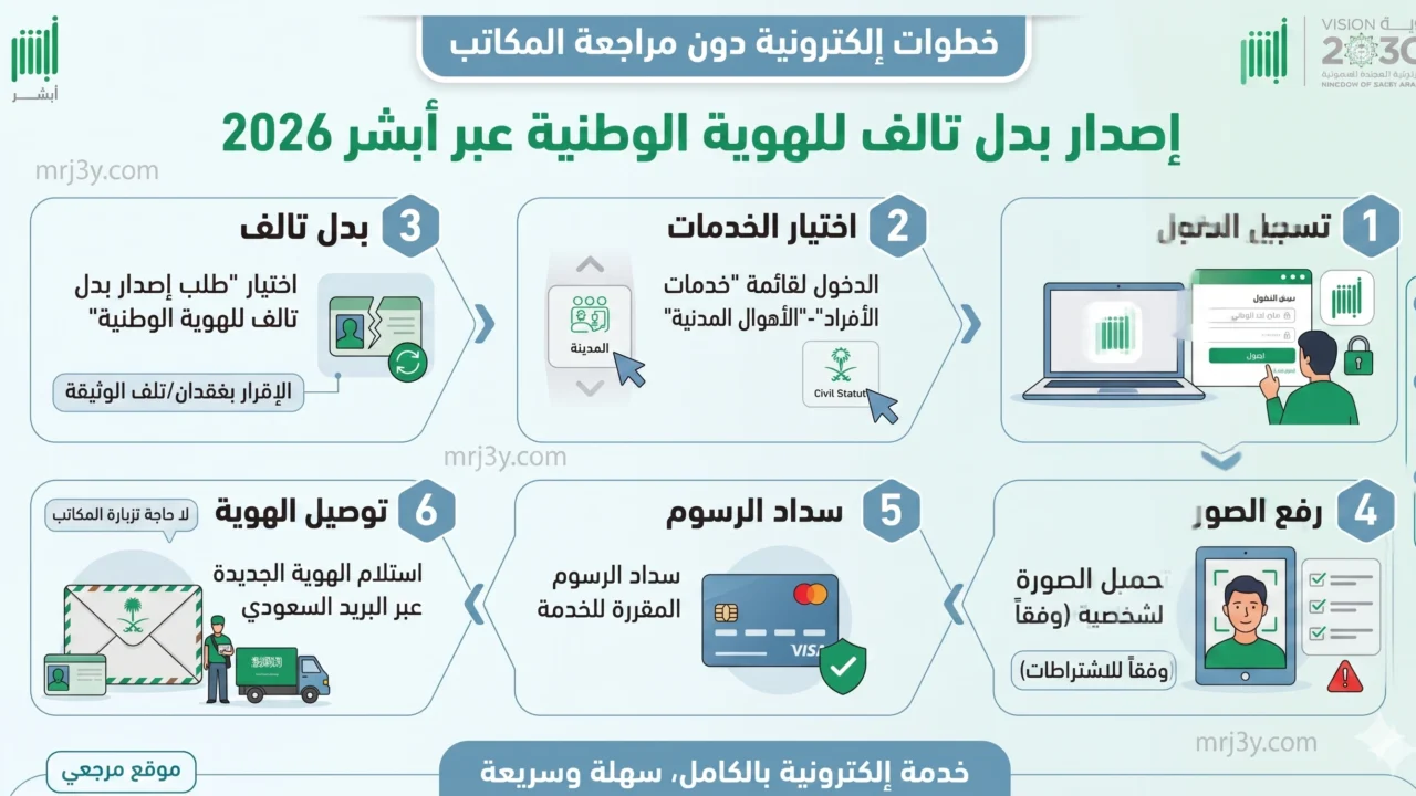 إصدار بدل تالف للهوية الوطنية عبر أبشر 2026 خطوات إلكترونية دون مراجعة المكاتب